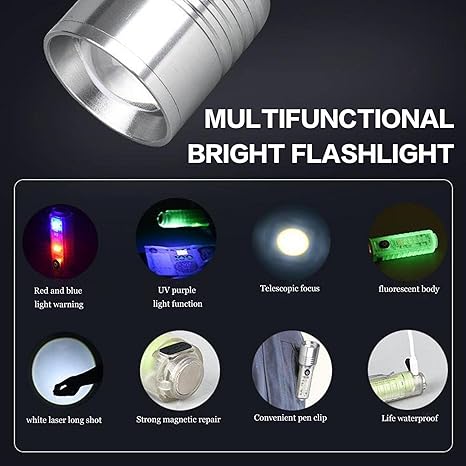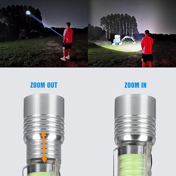 La Mini Linterna LED Zoom Carga USB está construida con un cuerpo de aleación de aluminio de grado aeronáutico, lo que garantiza una alta resistencia a impactos y desgaste.