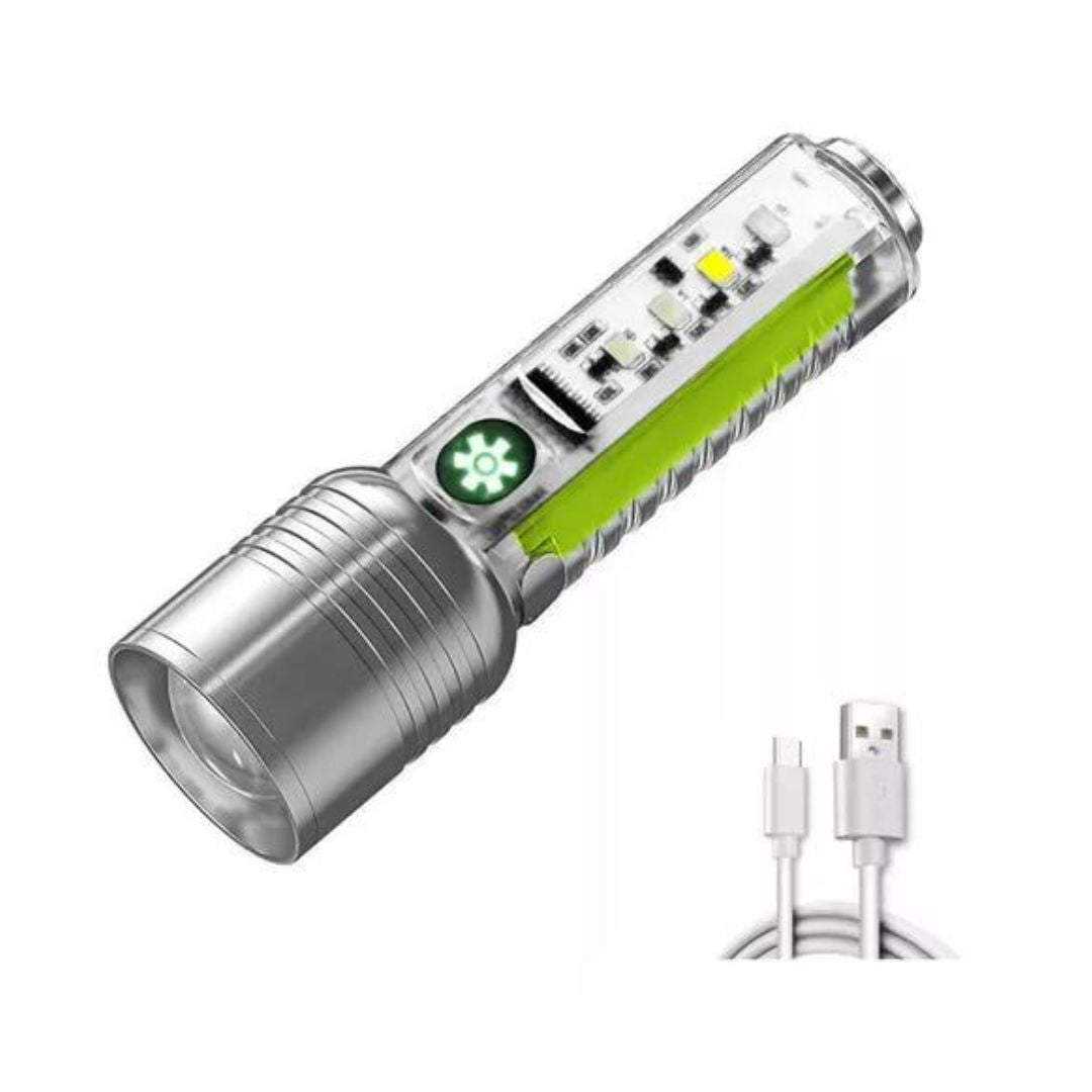 La Mini Linterna LED Zoom Carga USB está construida con un cuerpo de aleación de aluminio de grado aeronáutico, lo que garantiza una alta resistencia a impactos y desgaste. Esto la convierte en una opción ideal para quienes buscan una linterna que resista el uso diario riguroso, ya sea en actividades escolares o en aventuras al aire libre.