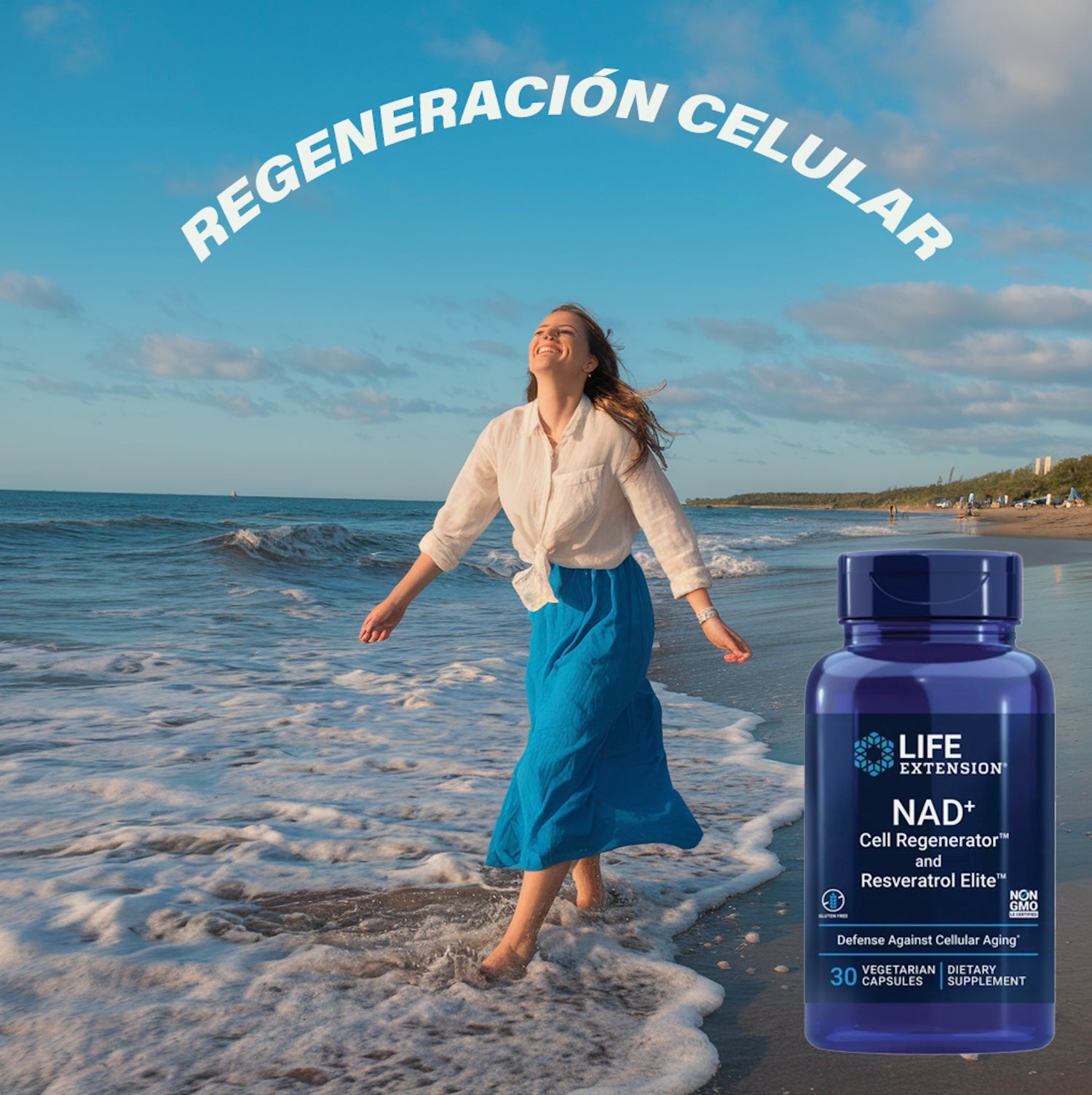 Los ingredientes clave como NAD+ y Resveratrol trabajan juntos para regenerar células dañadas, combatir los signos del envejecimiento y promover una vida celular más sana y duradera.