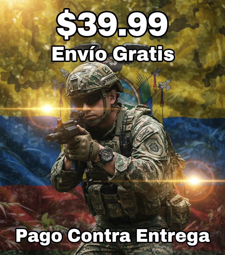Su caja táctica, con diseño inspirado en operaciones reales, protege el reloj con espuma de alta densidad y lo presenta como el accesorio de élite que es. Ideal para regalar con impacto o para guardarlo con orgullo.