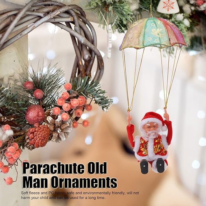 El "Papa Noel Paracaídas" está fabricado con materiales duraderos y resistentes, asegurando que soporte múltiples temporadas navideñas sin perder su atractivo. Su construcción robusta elimina las preocupaciones sobre la fragilidad y garantiza que pueda ser manejado por niños sin riesgo de daños.